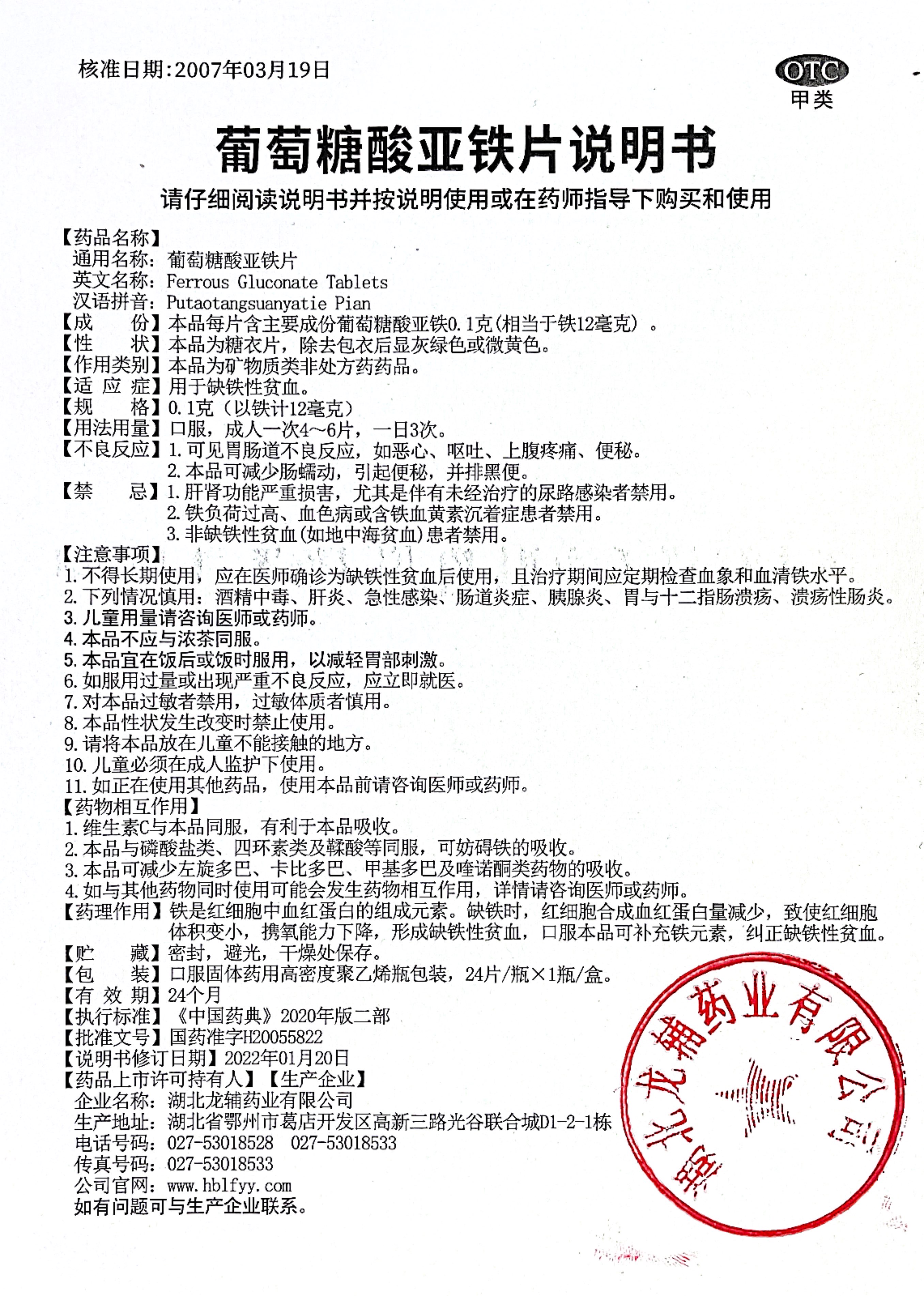 考慮到兒童、孕婦等特殊人群在不同階段對鐵劑的用藥需求和劑量的把控,湖北龍輔藥業(yè)有限公司生產(chǎn)的0.1g/片(以鐵計12毫克)正好滿足這一需求。